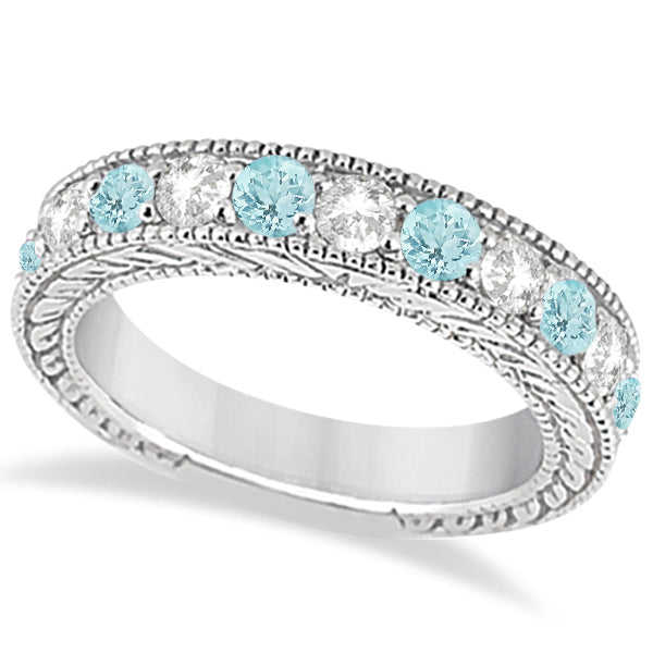 14k White Gold Fine Jewelry Set Antique Diamond & Aquamarine Bridal Wedding Ring 2.75ct