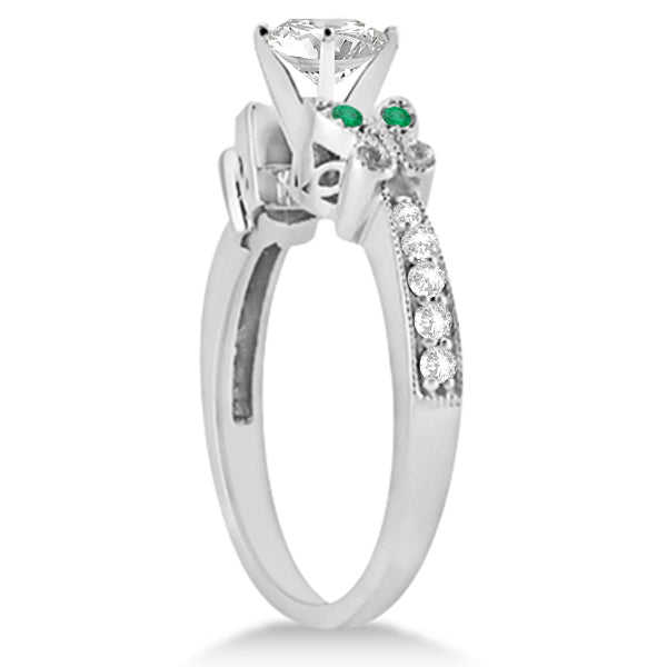 14k White Gold Heart Diamond & Emerald Butterfly Bridal Set 1.21ct with Freshwater Pearl Fine Jewelry