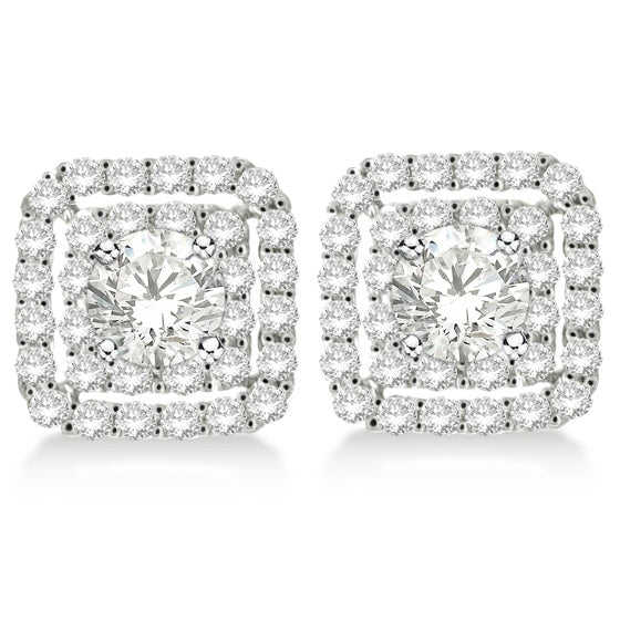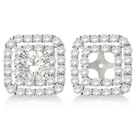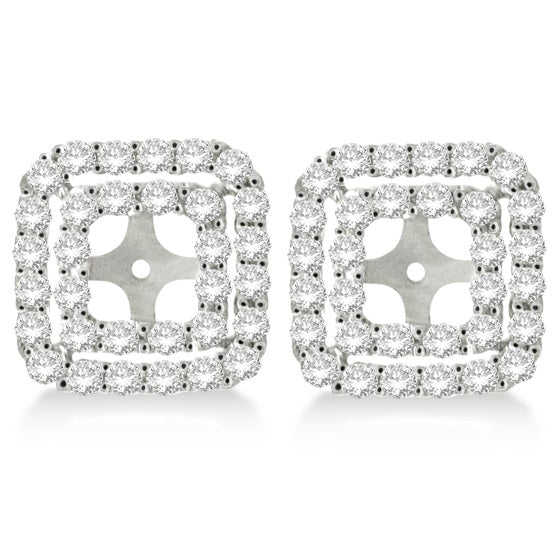 14k White Gold Pave-Set Square Diamond Earring Jackets 1.05ct Diamond Jewelry