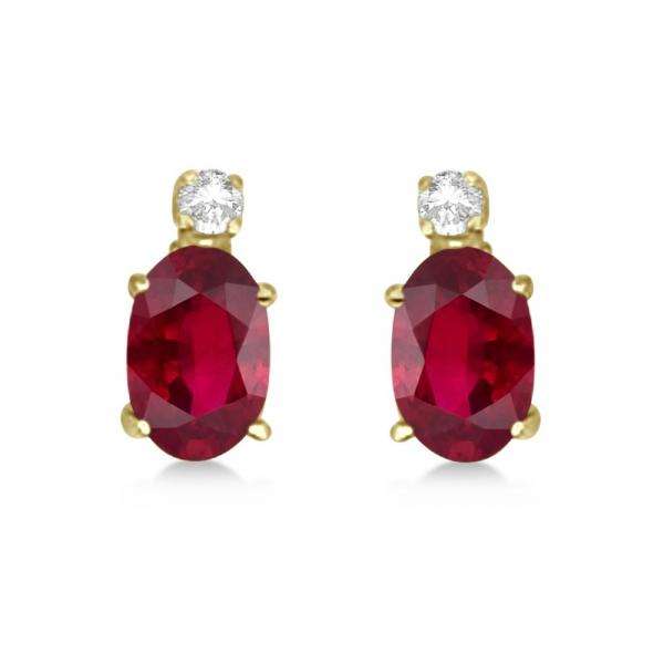 14k Yellow Gold 0.43ct Oval Ruby Stud Earrings with Diamonds Elegant Diamond Earrings