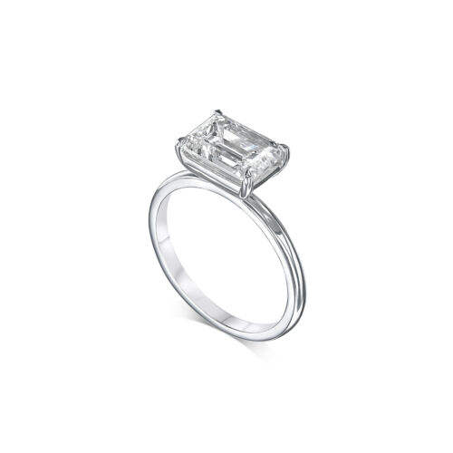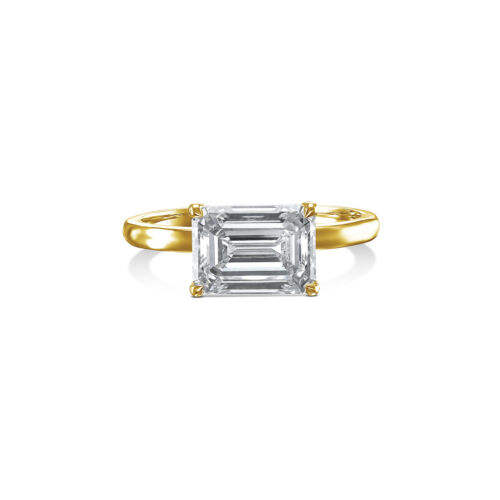 14k Yellow Rose White and Yellow Gold Ladies Custom Ring with 4 Claw 1ct F Color Lab Grown Diamond Emerald Cut