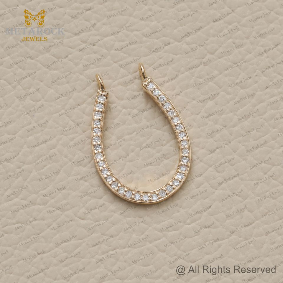 14k Yellow Gold Horseshoe Pave Diamond Pendants Jewelry