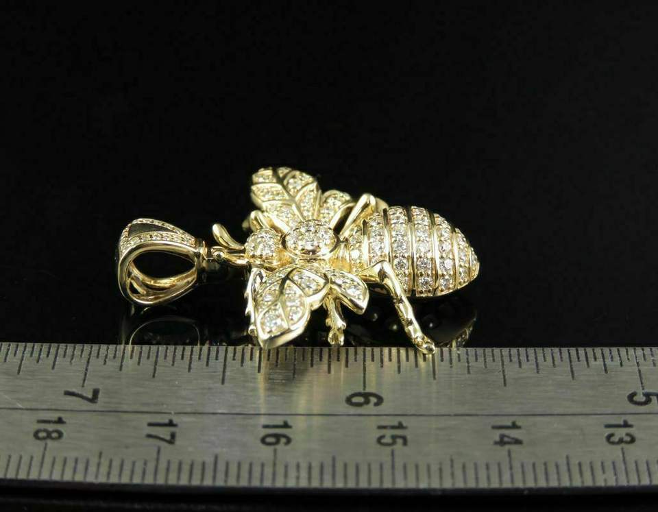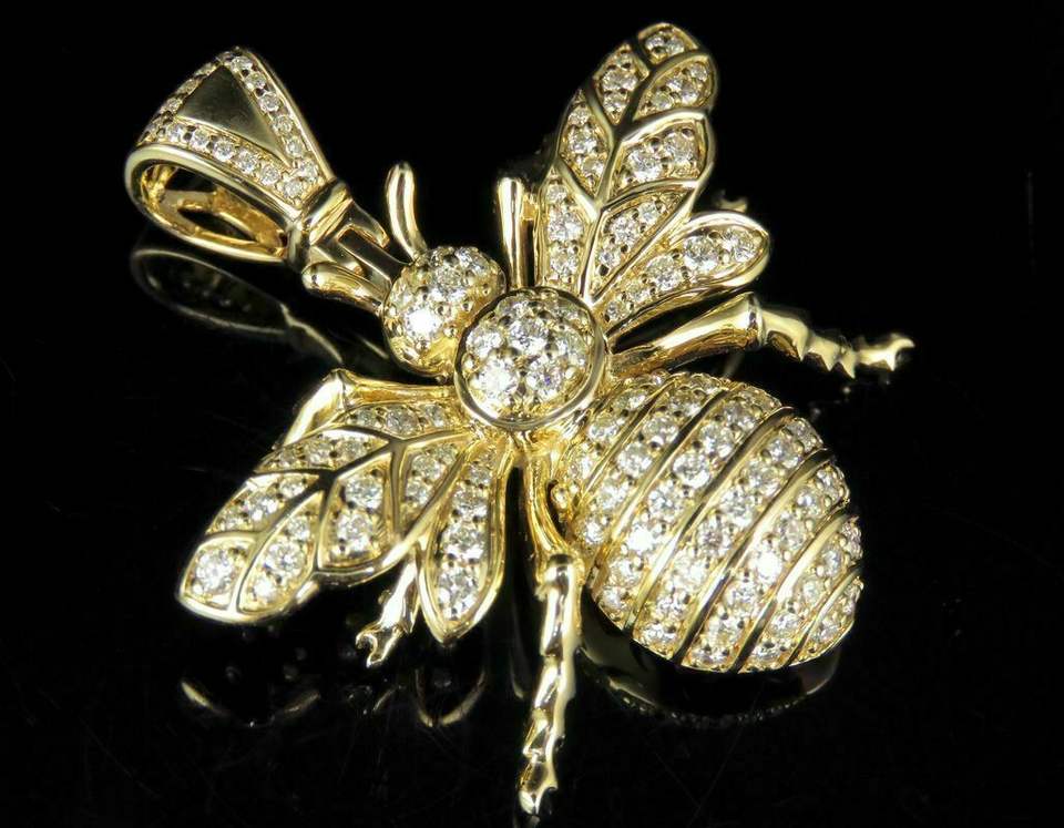 14k Yellow Gold Plated 1.35 Ct Round Princess Cut Moissanite Beauty Bee HipHop Style Pave Set Pendant