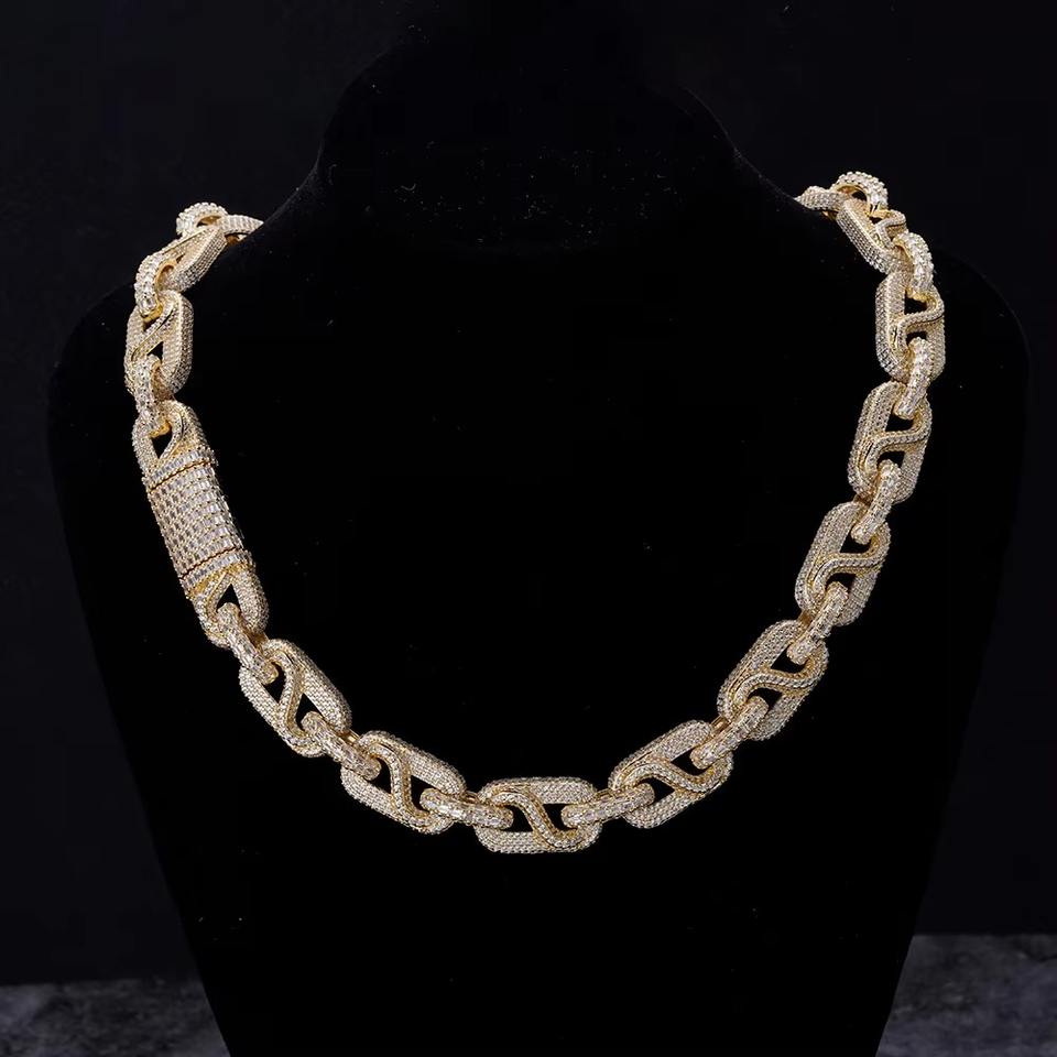 14k Yellow Gold Plated 925 Sterling Silver Premium Quality Men's Hip Hop VVS Moissanite Diamond Cuban Link Chain Fine Necklaces