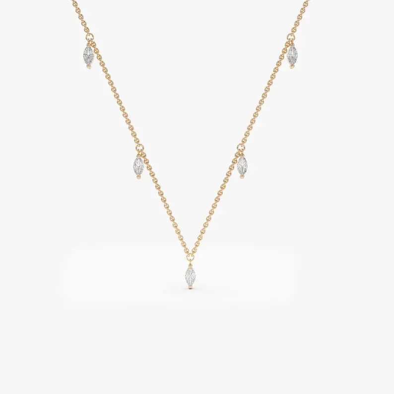 14k Gold Marquise Diamond Dangling Necklace Dainty Layering Diamond Bridal Jewelry Newest Design Marquise Diamond Necklace