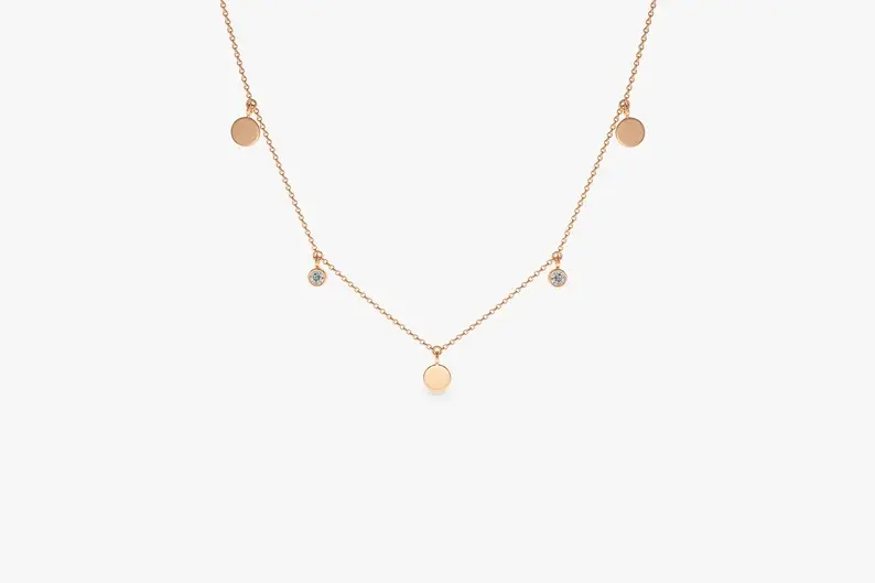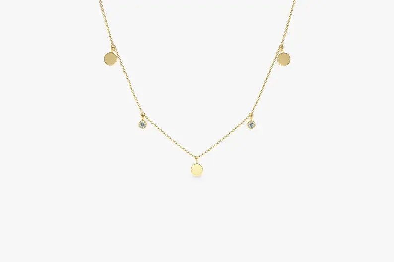 14k Gold Round Diamond Dangling Necklace Dainty Dangling Diamond Necklace With Dangling Gold Disc by Indian Supplier OEM