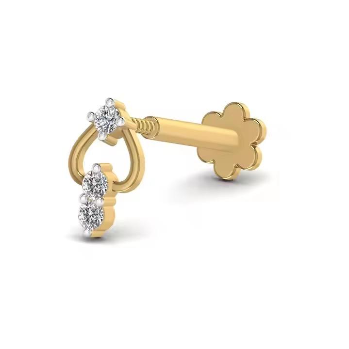 14kt Gold Fine Jewelry Diamond Nose Pin Stud Three Stone Body Piercing with Yellow Rose and White Gold