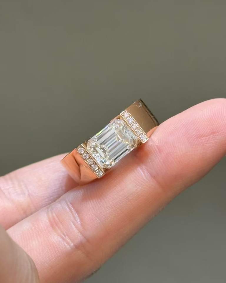 14kt Yellow Gold Vermeil Eternity Ring Emerald Cut Moissanite Diamonds Modern Design Band for Weddings and Parties Wholesale