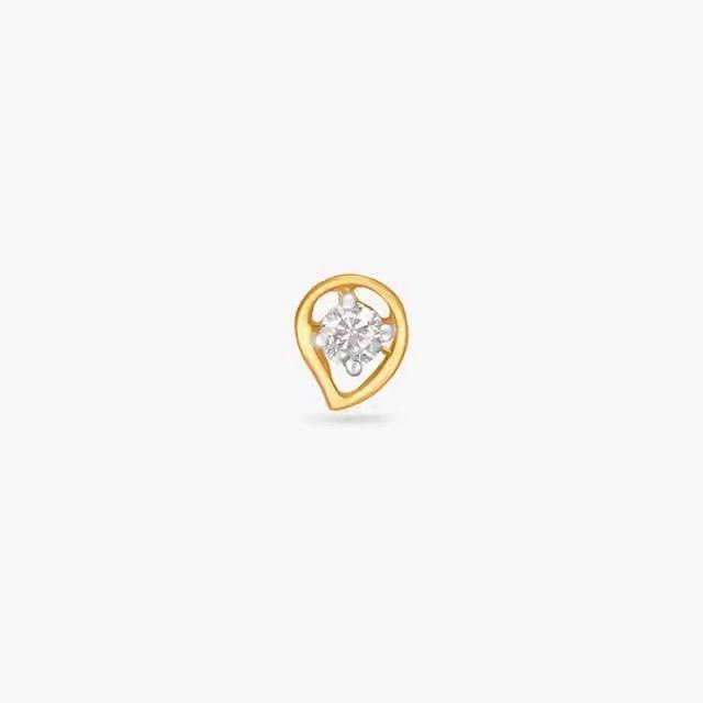 14kt Yellow gold iced out fashionable traditional stud nose pin with round shape lab grown diamond DEF color vvs clarity