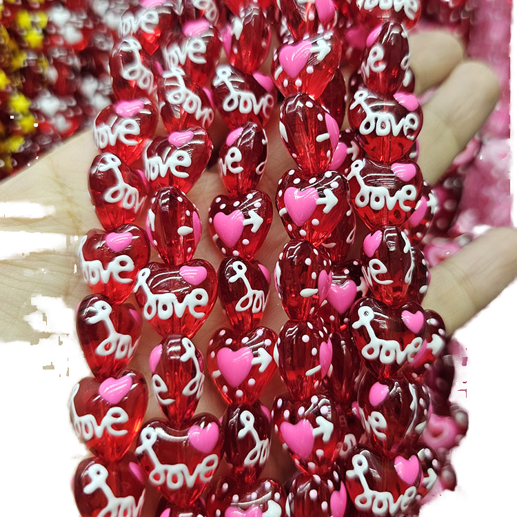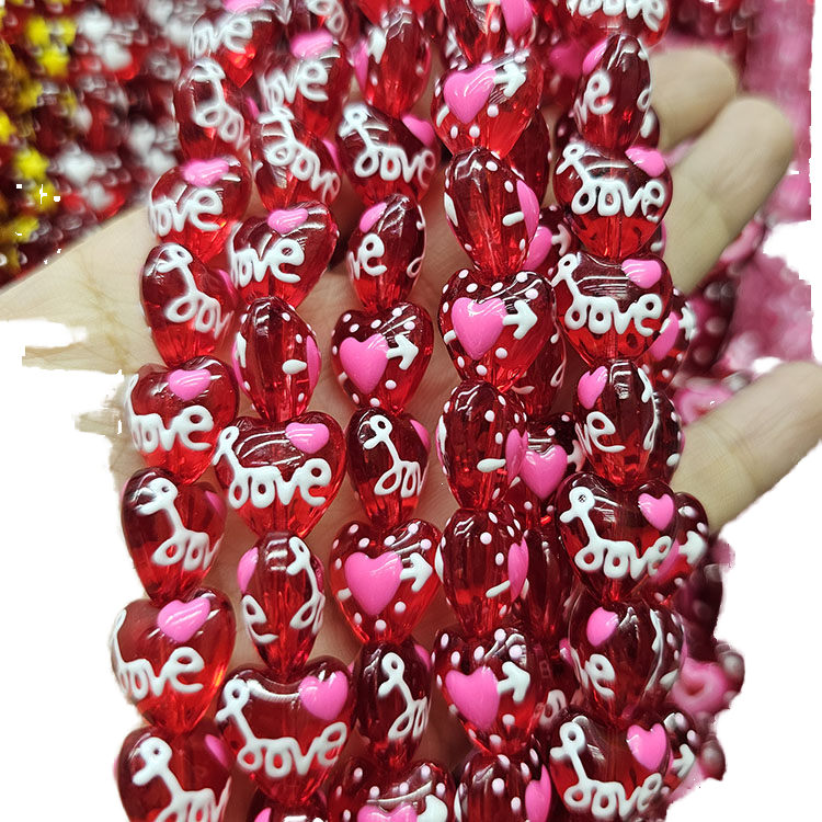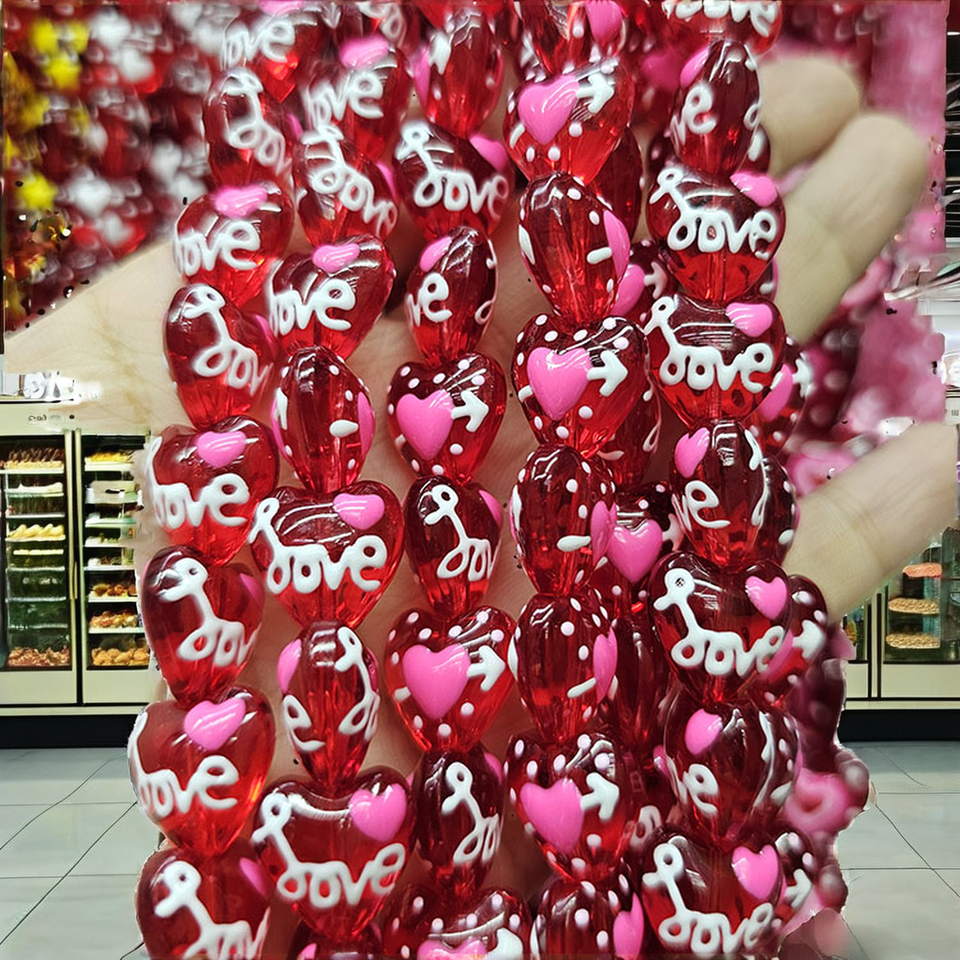 14mm Chic Chunky Hand-Painted Rainbow & Red Love Glaze Lampwork Glass Puffy Heart Beads Jewelry Making