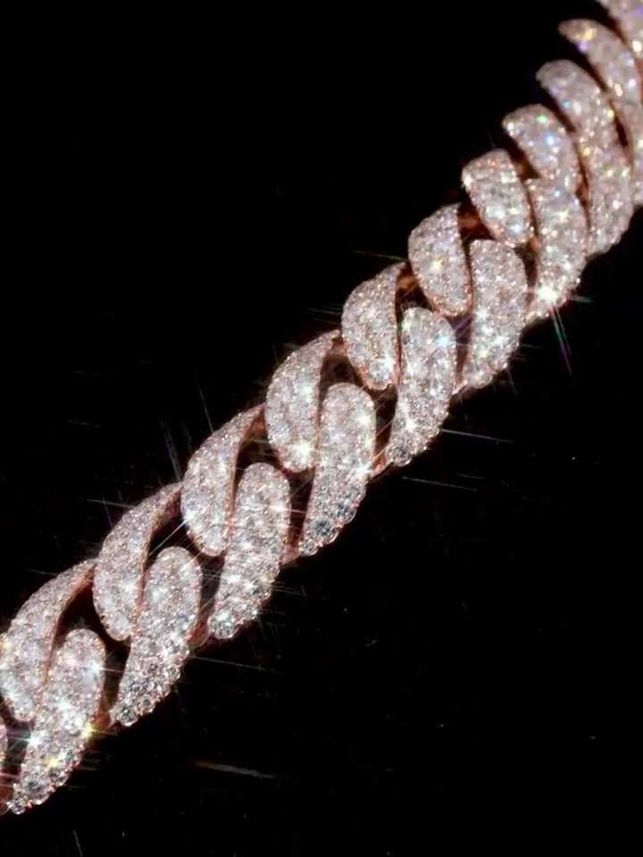 14mm Rhodium Mosaic Set Cuban Link Chain VVS Moissanite Stones Passes Diamond Tester 925 Sterling Silver Gift Party Jewelry 35