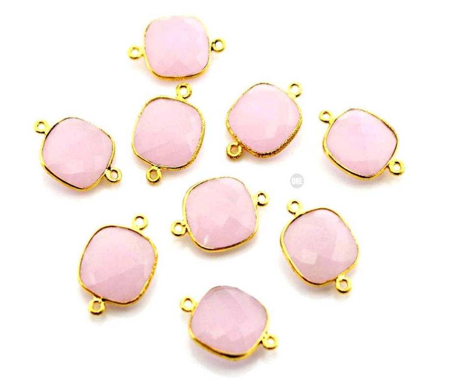 Handmade 14mm Square Cut Pink Tourmaline Gemstone Bezel Set 925 Sterling Silver Good Quality Crystal Lampwork Glass Beads for