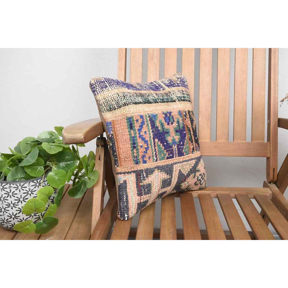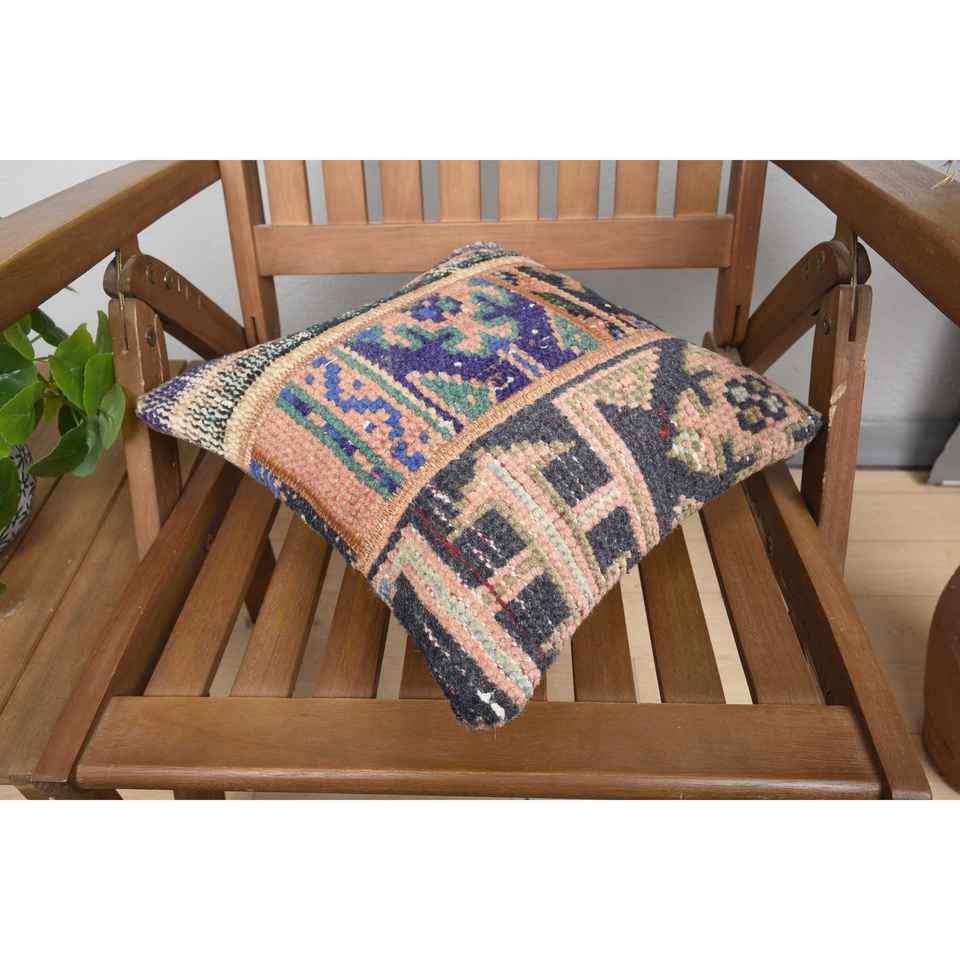 14x14 Inch Multicolor Wool Kilim Pillow Exquisite Vintage and Fluffy Patterned Decorative Cushion for Sofa Woven Technique
