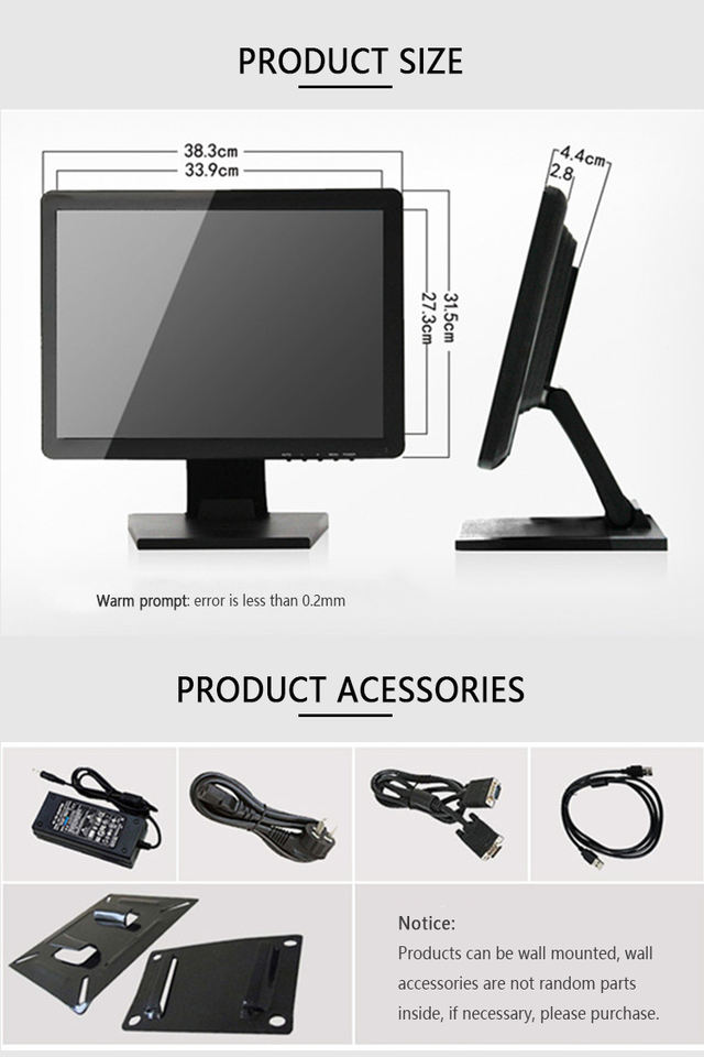 15 17 19 Inch Windows Pos System Compatible IPS Durable Touch Monitor POS Supermarket Restaurant Touch Screen Monitor