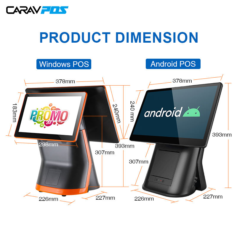 15.6 Inch 11.6 Inch Dual Screen 4G Android Pos Terminal Machine with Printer 58mm 80mm