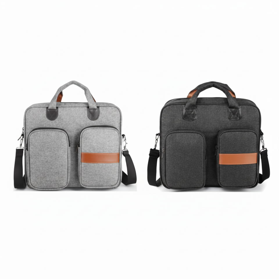 15.6-Inch Laptop Briefcase 660 Denier Black and Grey Linen Phthalate-Free Fabric 8 mm Foam Padding Type 8 Zipper Soft Bag