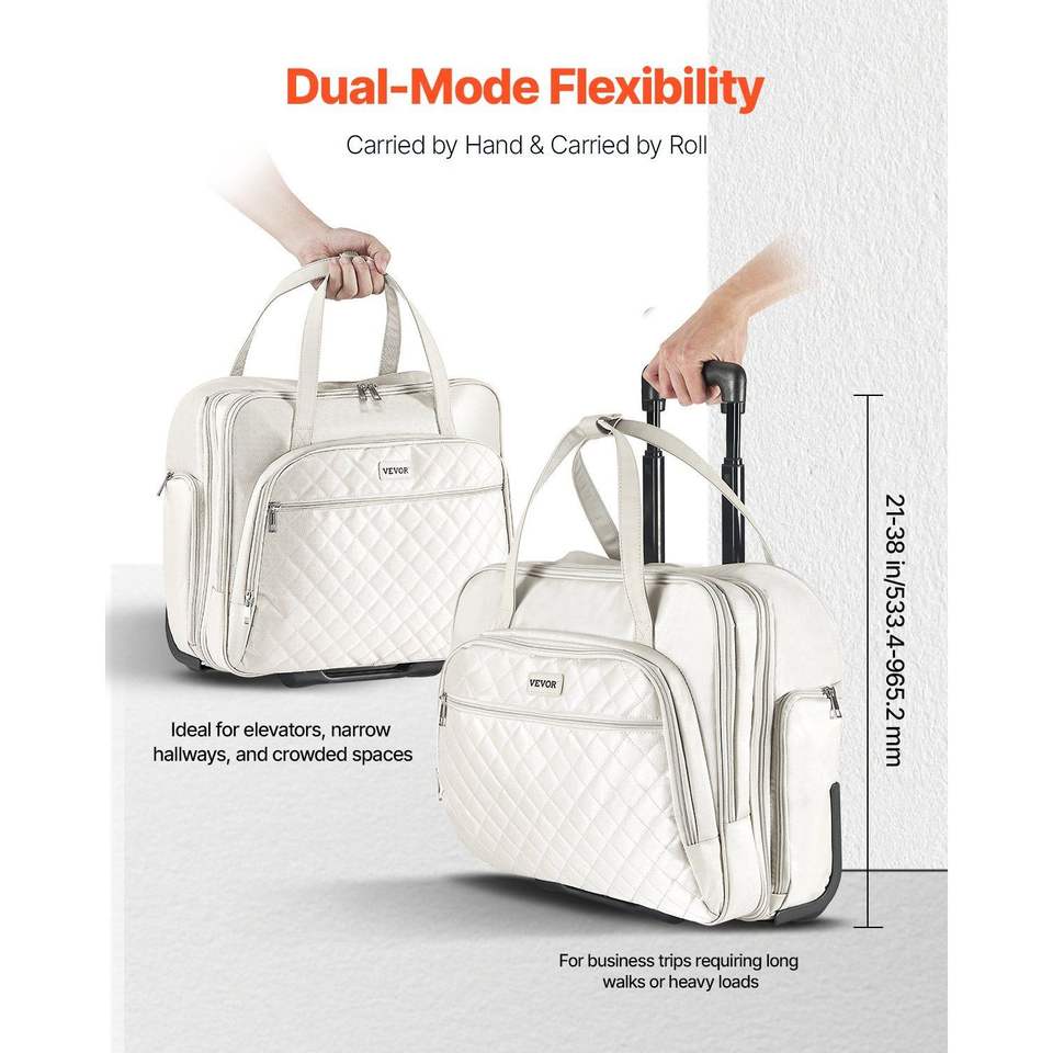 15.6 Inch Laptop Rolling Briefcase Wheeled Computer Tote Bag 2 Fixed Wheels Telescoping Handle Business Office Travel Case for