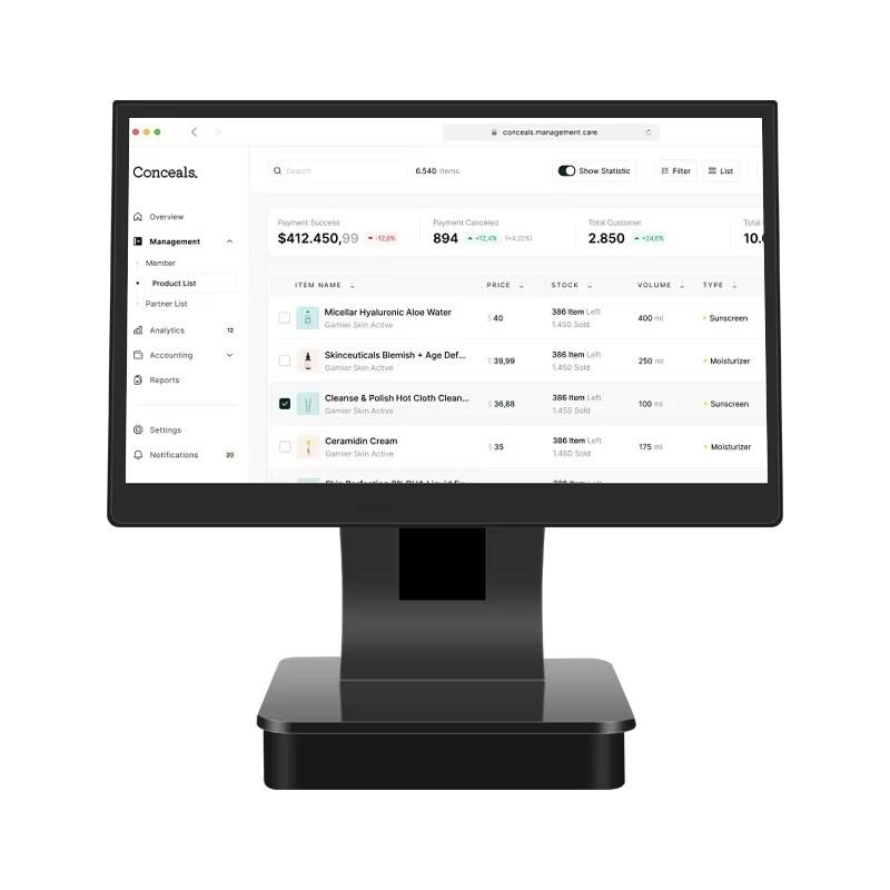 15.6 Inch Supermarket Cash Register Table Dual Screen POS Systems Point Sale Machine Android Capacitive Touch Screen Wi-Fi 6 NFC