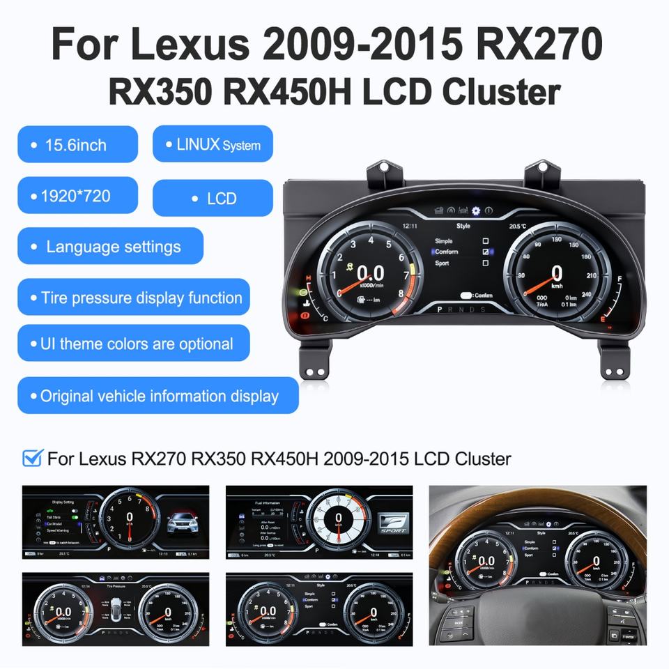15.6 Inch for Lexus RX270 RX350 RX450H 2009-2015 Digital Instrument Cluster Speedometer Dashboard Upgrade