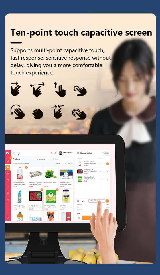 15.6inch Windows & Android POS Terminal with I3/i5/i7/i9 CPU WiFi/Bluetooth 1-Year Warranty for Restaurant & Retail Use