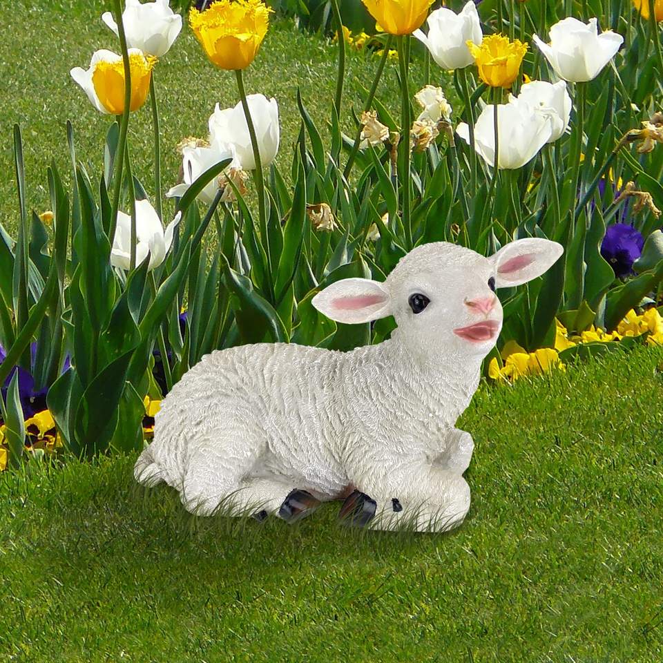 15 Inch Long Yorkshire Lamb Garden Statue Cast Stone Resin with White Finish Farm Animal Ornament