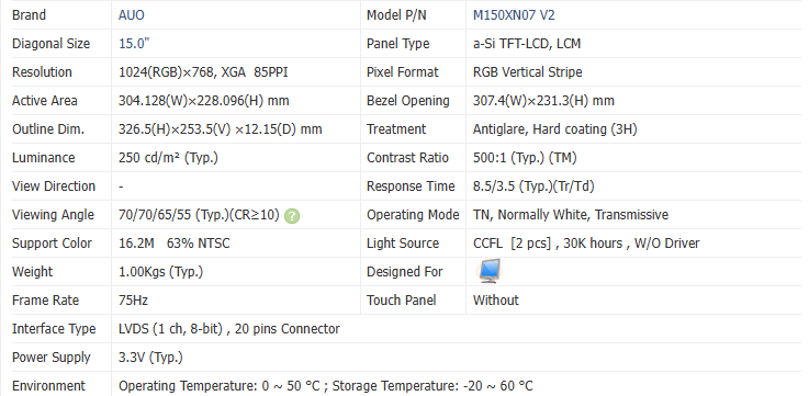 Product Name:M150XN07 V2