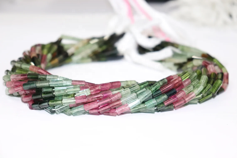 15-Inch Natural Gemstone Faceted Beads Multi-Tourmaline Tube 4*8mm Faceted Stones