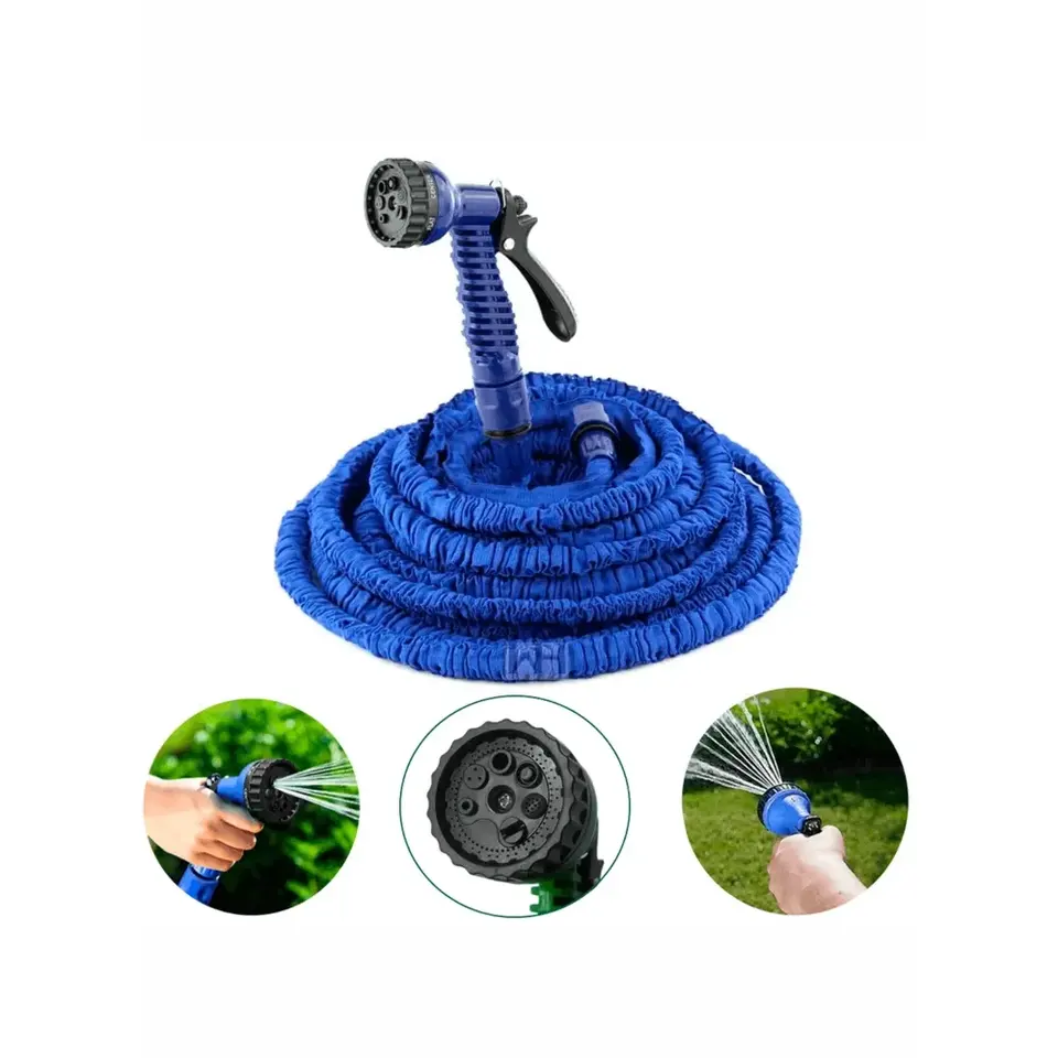 15 Meter Expandable Soft Polyester Latex Garden Hose Reel Flexible Spray Gun Fittings Adjustable Blue Outdoor Gardening Watering