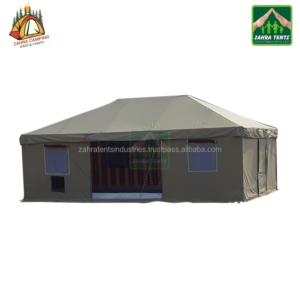 15 Person Large Canvas Waterproof Khaki Outdoor Camping Frame Tent Water Resistant Disaster Relief Tent