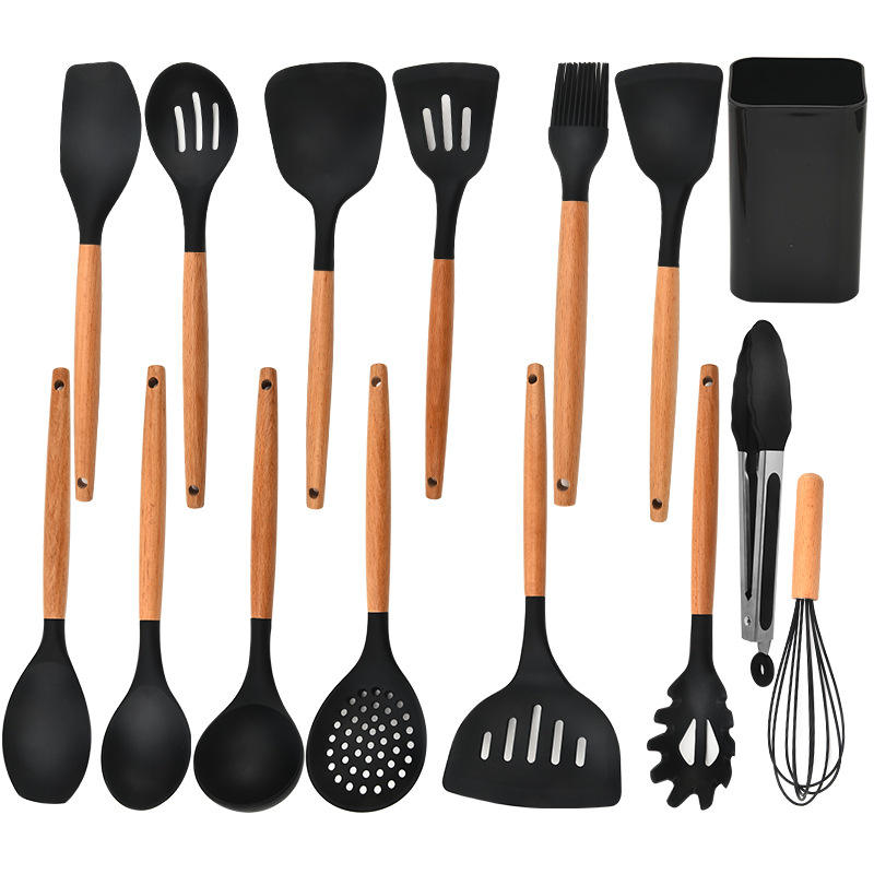 15-Piece Household Kitchenware Set Wooden Handle Silicone Including Pasta Server for Stir-Frying Kitchen Cooking Essentials