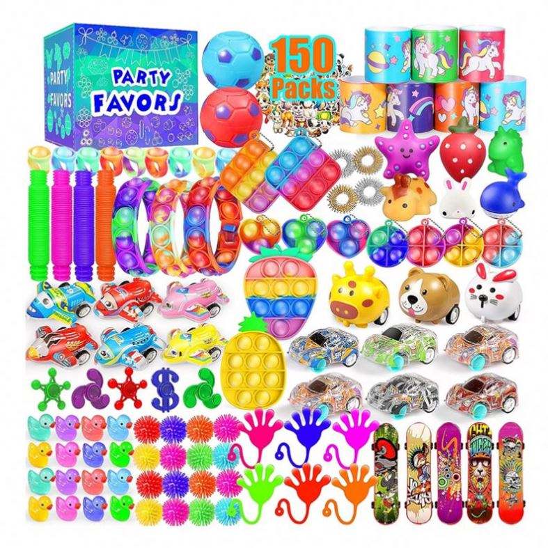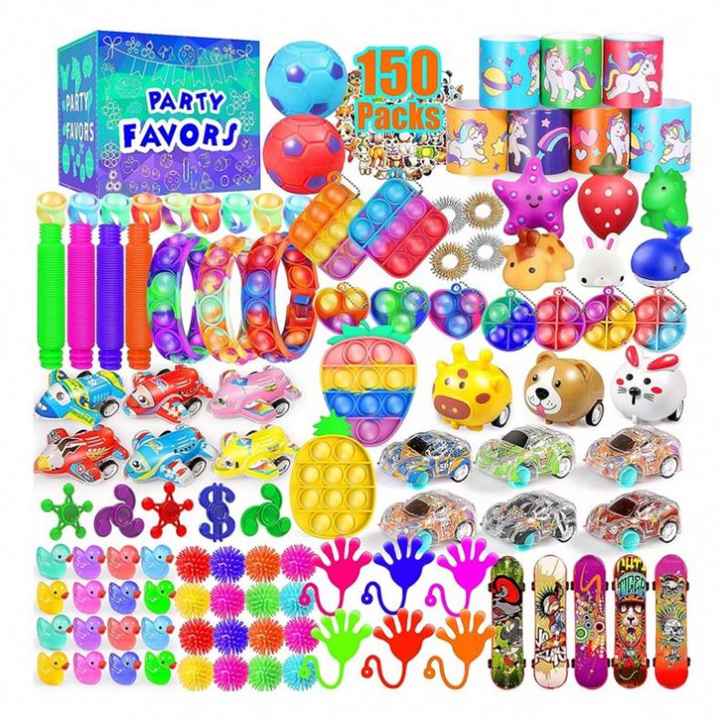 150-Piece Kids Fidget Toy Decompression Birthday Gifts Classroom Rewards Stickers Keychains Bubble Toys Perfect Party Pack