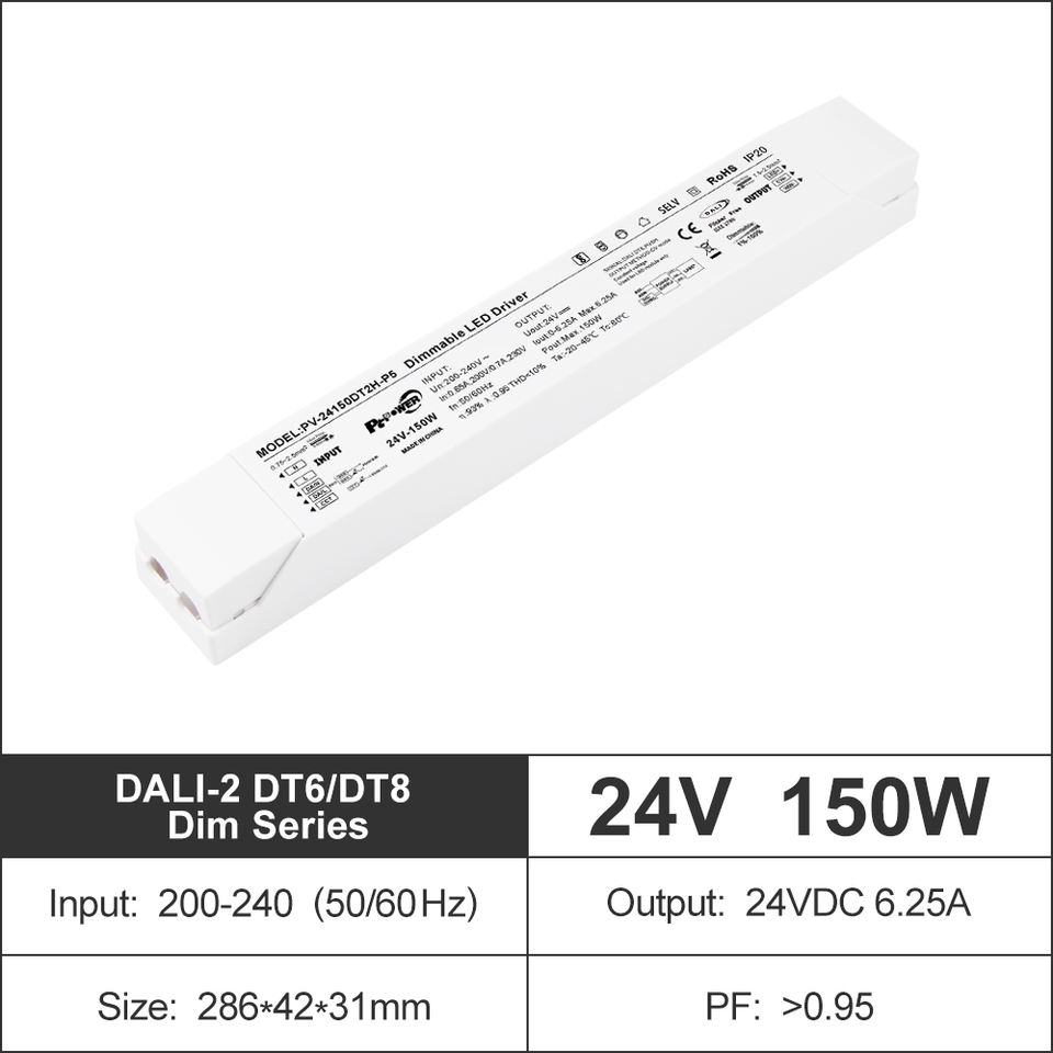 150W DALI2 DT8 Controller Dimmable LED Strips Driver Indoor Smart Lighting LED Power Supply Transformer AC220-240V to DC 12V 24V