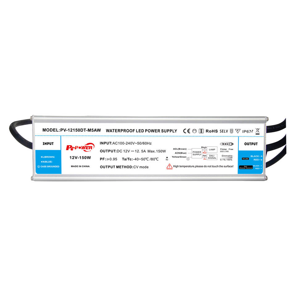 150W Dimmable LED Driver IP67 Waterproof AC-DC Power Supply with Dali Dimming Plastic Case 0-10V Constant 12V/24V Voltage