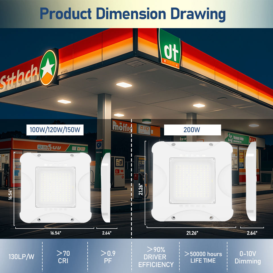 150W Selectable Canopy LED Lights for Gas Stations Warehouses-IP65 Protection DLC for Certified 5-Year Warranty 2700K-6500K
