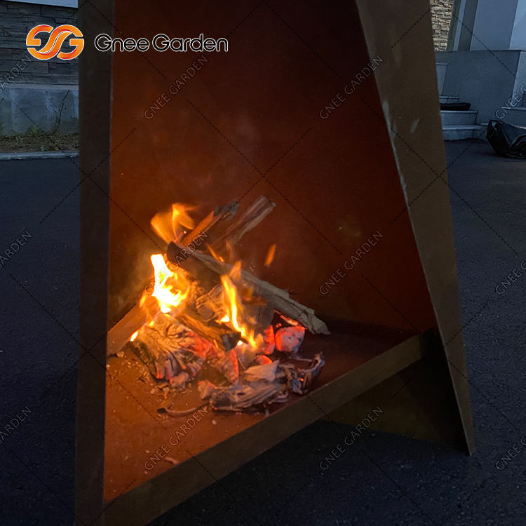 150cm Outdoor Garden Large Rust Corten Steel Log Burner Fireplace Wood-Burning Irregular Chiminea Freestanding Eco-Friendly