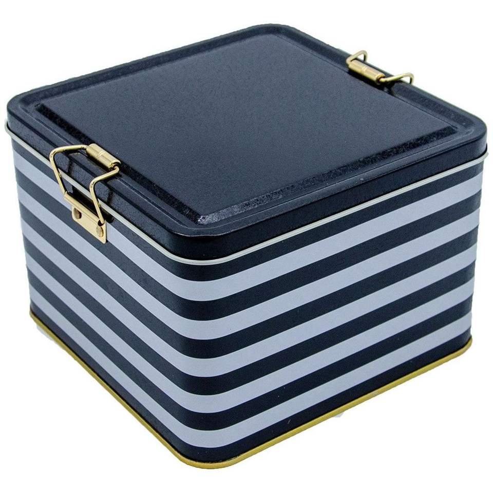 158x158x110 mm Square Metal Storage Box 2.5L Wire Clasp and Transparent Lid Black White Line Pattern Available in Black White