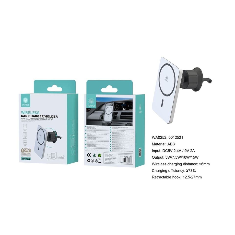 15W Magnetic Car Air Vent Charger/Phone Holder - White - Automotive Accessory
