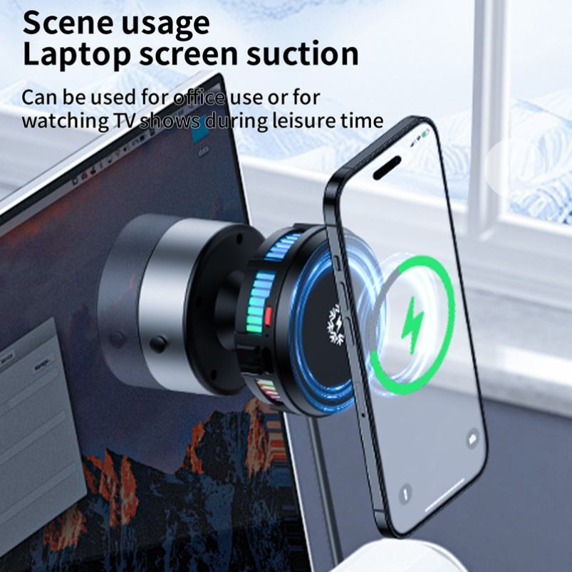15W Wireless Charging and Cooling Magnetic Universal Car Phone Holder Suction Cup Rotatable Phone Holder for Car and Kitchen