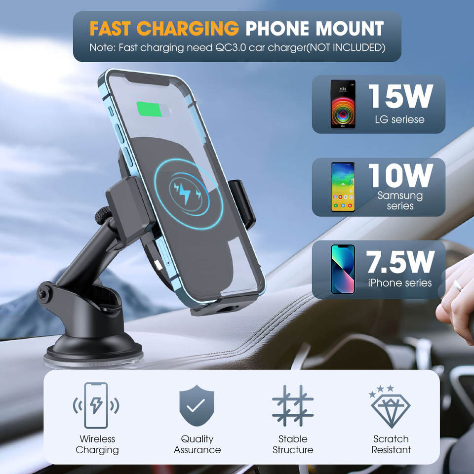 15W Wireless Simple Fast Multifunction Chargers for Car Magnetic Phone Holder With Sensor Wireless Charger