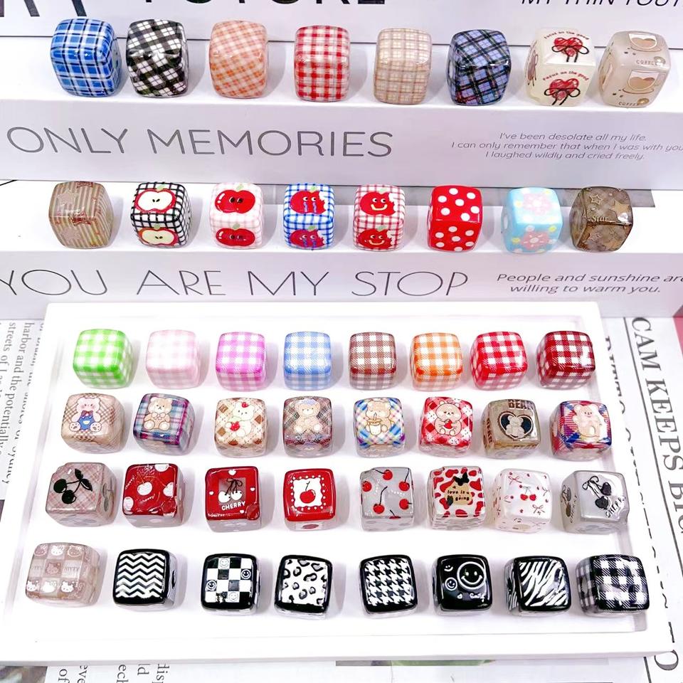 15mm Handmade Loose Beads Cute Bear Plaid Apple Square Print Resin Cube Beads DIY Bracelet Craft Jewelry Making