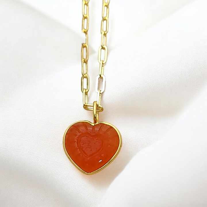 15mm Heart Shape Carnelian Pendant Necklace Gold Plated Handmade Carnelian Carving Necklace Indian Jewelry Wholesale Suppliers
