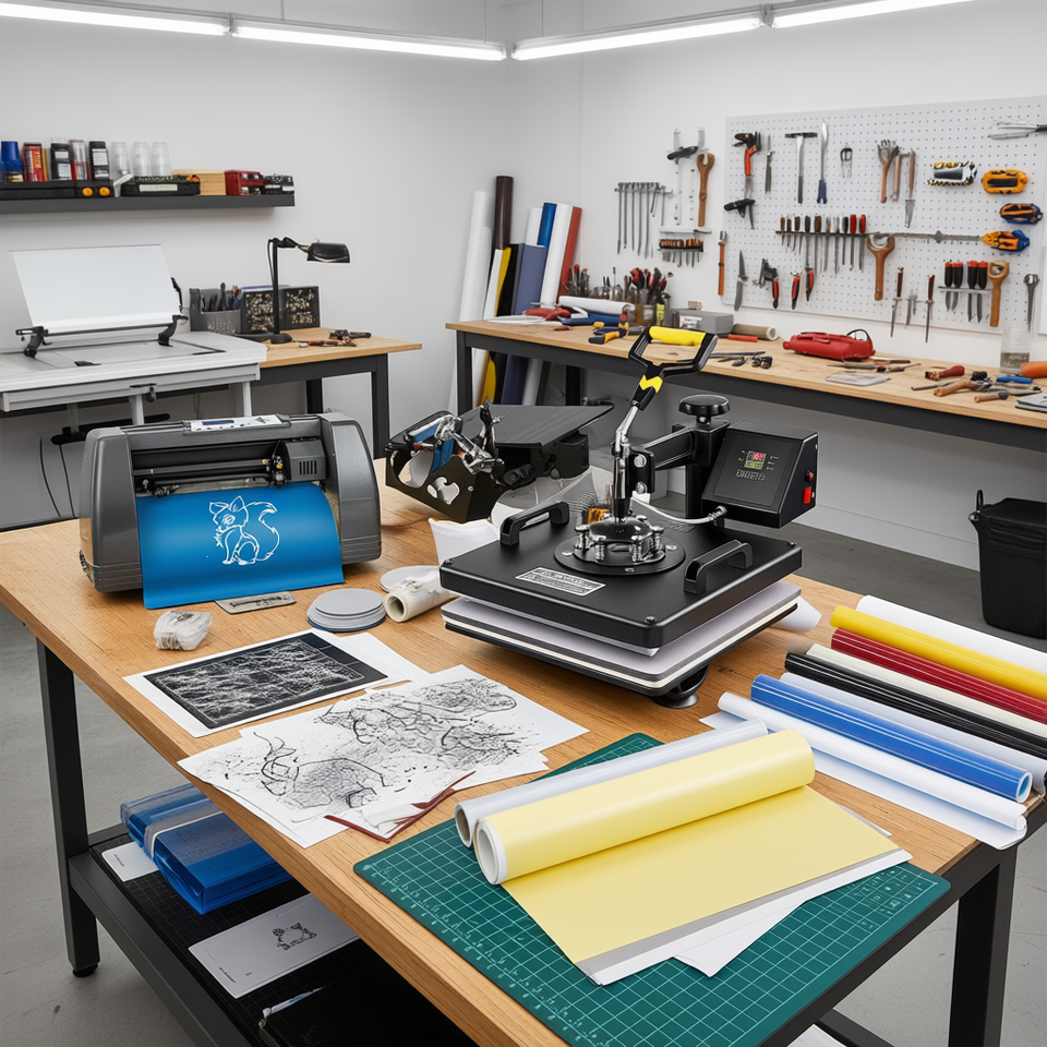 15x15 6 In 1 Sublimation Heat Press Machine Flatbed Manual Vinyl Cutter Plotter For T Shirt Mug Cap Mouse Pad Plate