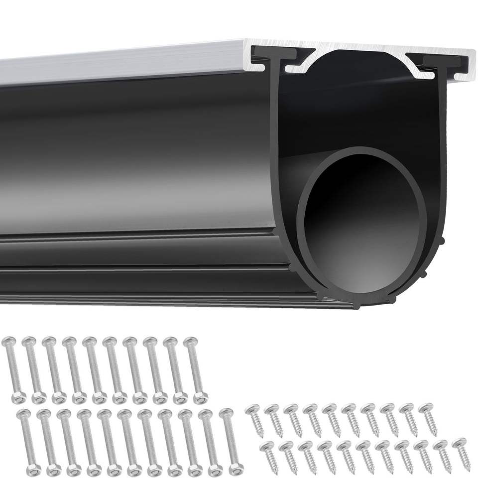 16 Ft Black Garage Door Seals Kit Bottom Rubber U Shape O Ring Weather Stripping Pre-Drilled Aluminum Track Retainer 5/16 Inch