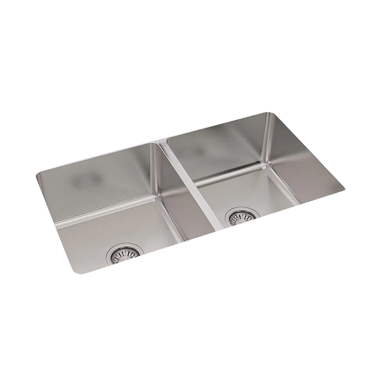 16 Gauge Stainless Steel Double Bowl 33 X 19 Inch Drop-In Undermount Kitchen Sink One-Hole Counter Strainer Tight Radius