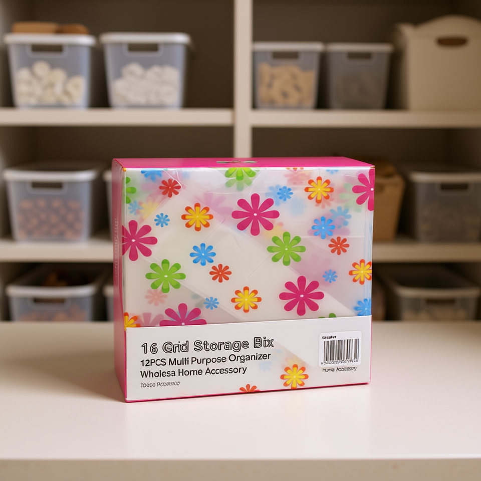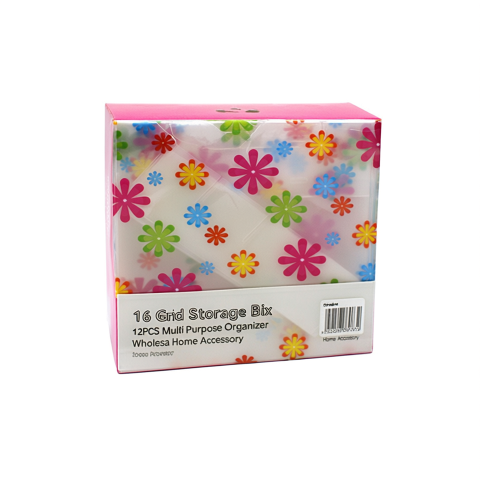 16 Grid Storage Box 12Pcs Multi Purpose Organizer Home Accessory Plastic Rectangle Design