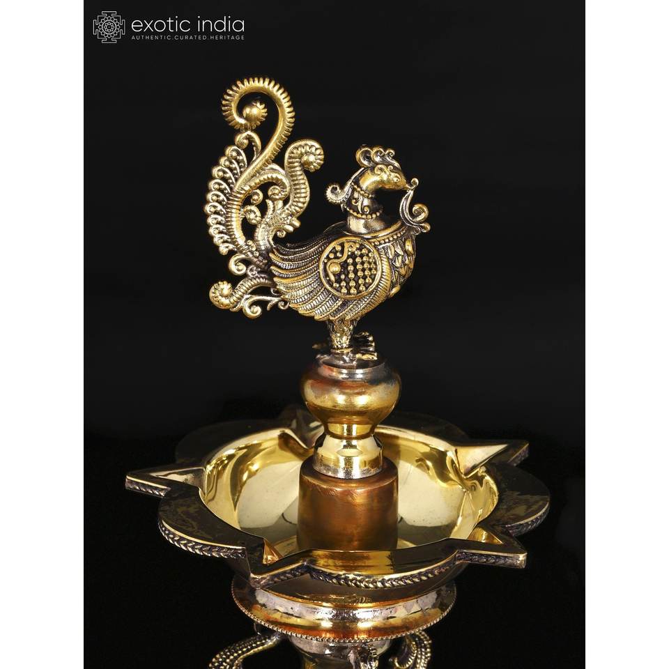 16-Inch Superfine Designer Peacock Brass Oil Lamp Elegant Home Decor Accessory