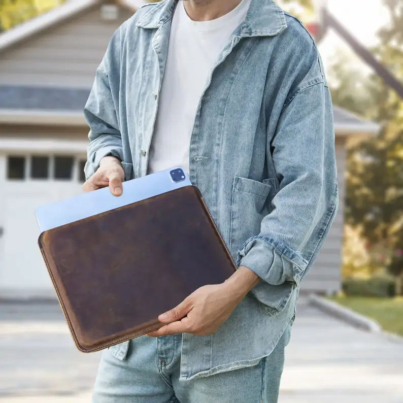 16 Inch Water Resistant Men Leather Laptop Bags Man Woman Multifunctional Leather Bags Laptop Sleeve