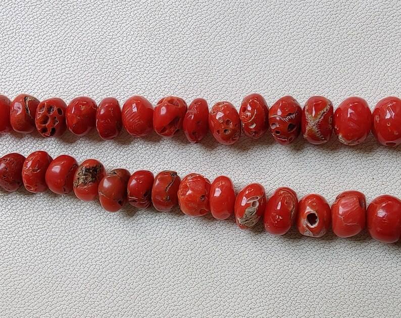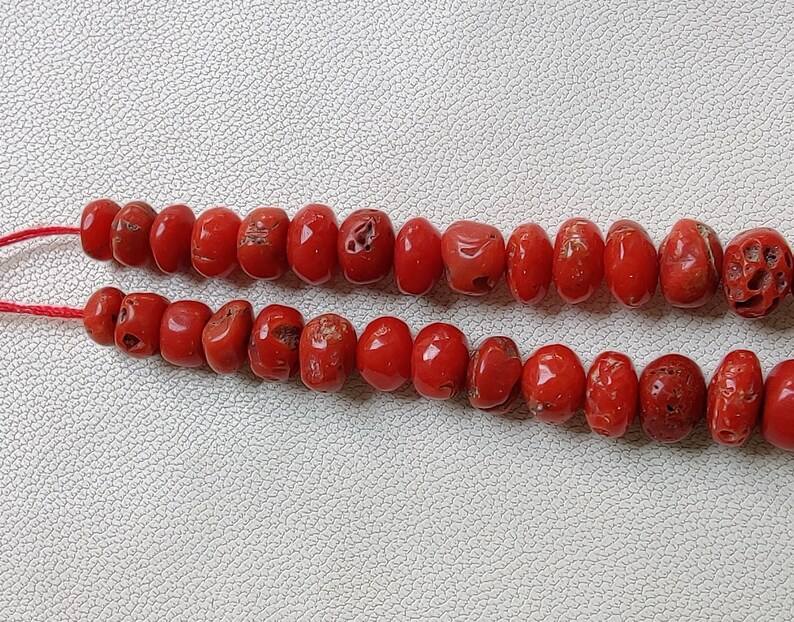 16 Inches Strand, Red Coral Rondelle Smooth Polished Beads, Smooth Old Red Coral Beads Size 10MM To 5 MM Gemstone