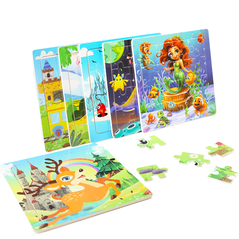 16-Piece Cartoon Animal Pattern Wooden Puzzle Board Educational Toys for Children Aged 5 to 7 Years Jigsaw Enlightenment