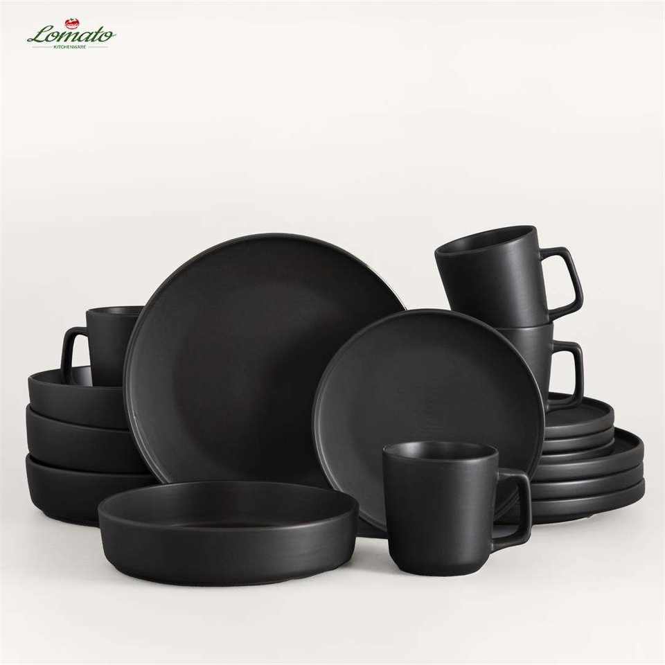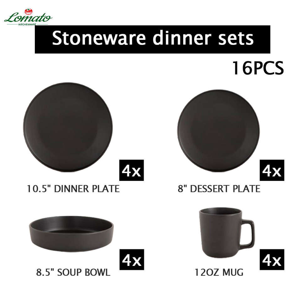 16-Piece Dinnerware Sets Crockery Dinner Sets Wholesale European Fine Ceramic Tableware Table Ware Stoneware Black Dinner Set